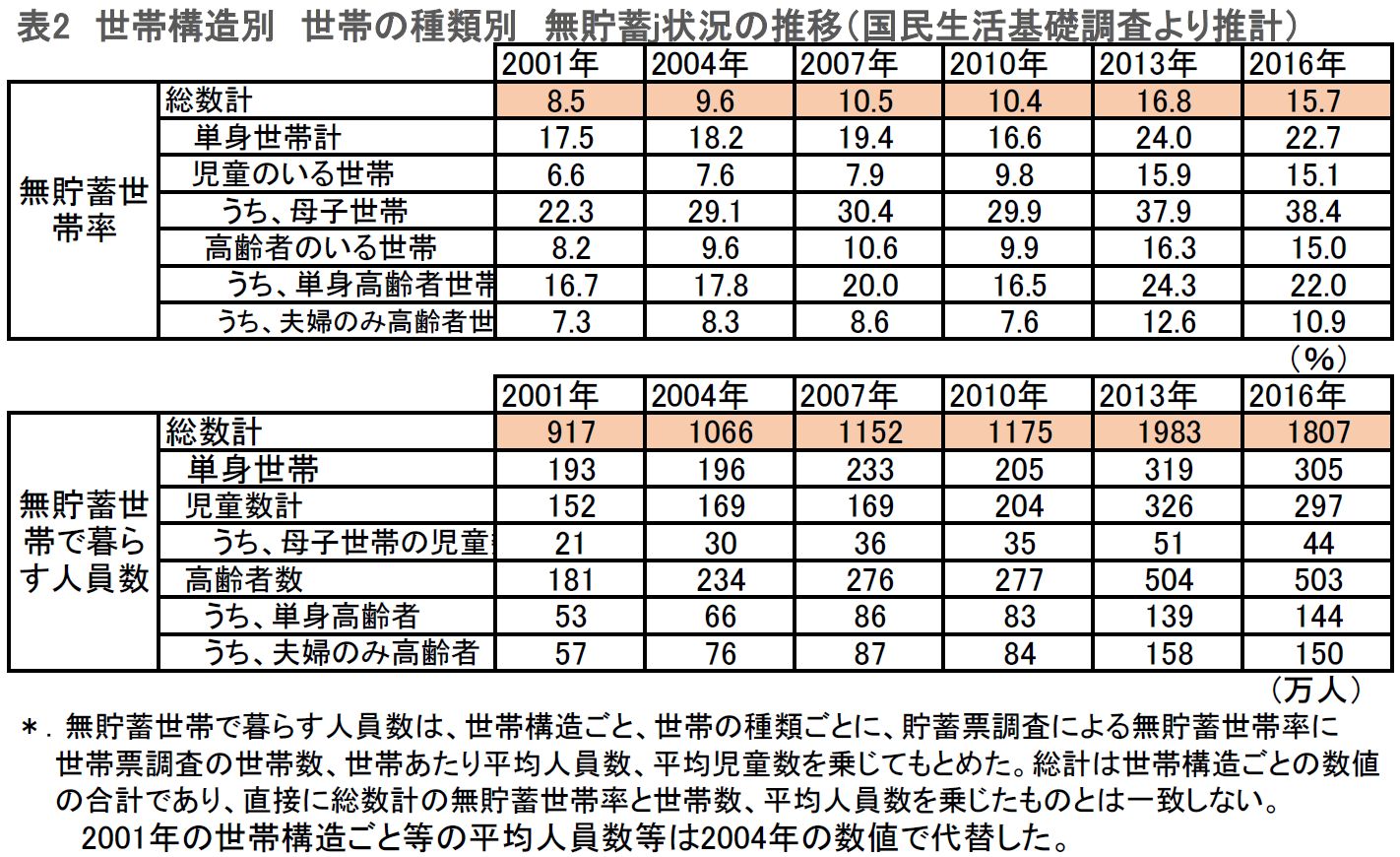 無貯蓄の高齢者世帯と子育て世帯の急増──「国民生活基礎調査」